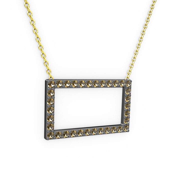 Dumanlı kuvars 925 ayar siyah rodyum kaplama gümüş kolye (40 cm altın rolo zincir)