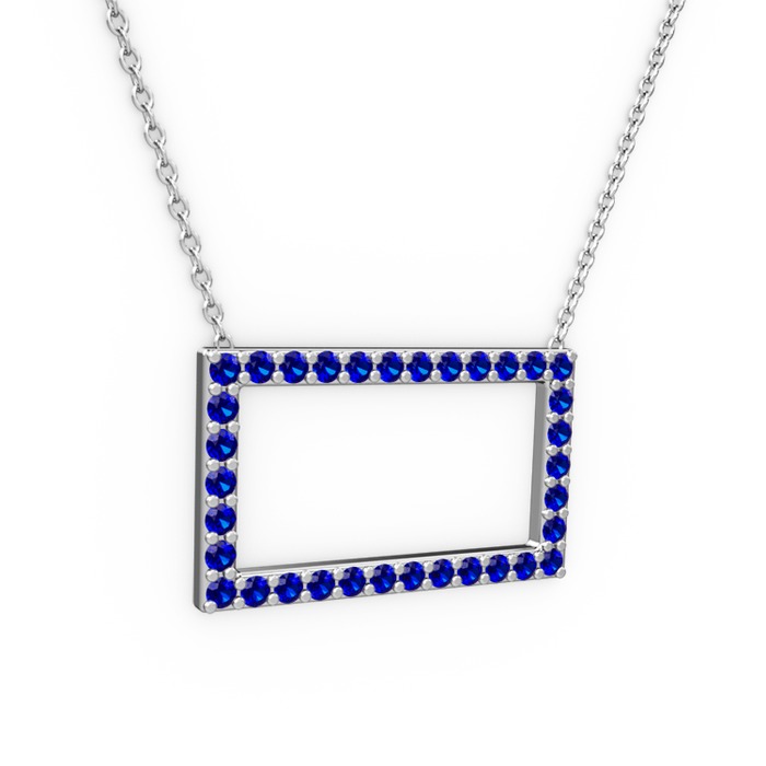 Lab safir 14 ayar beyaz altın kolye (40 cm beyaz altın rolo zincir)