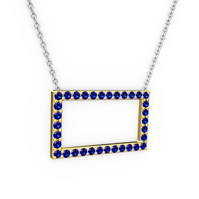 Lab safir 18 ayar altın kolye (40 cm beyaz altın rolo zincir)
