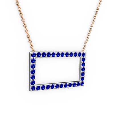 Lab safir 18 ayar beyaz altın kolye (40 cm rose altın rolo zincir)