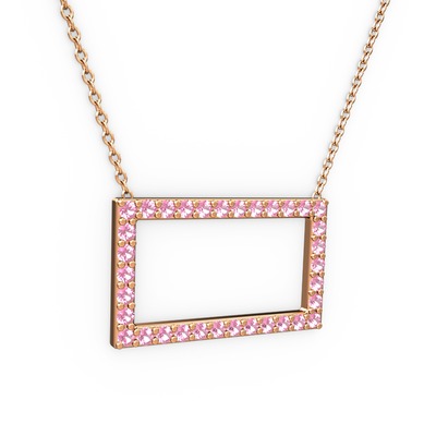 Pembe kuvars 14 ayar rose altın kolye (40 cm gümüş rolo zincir)