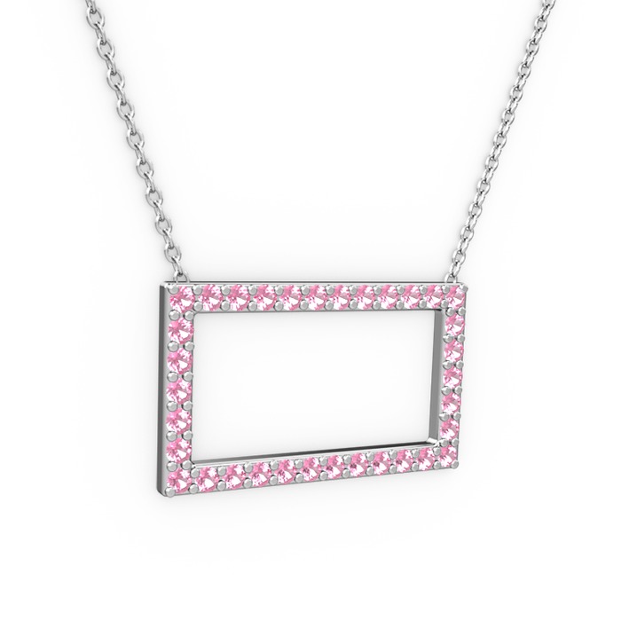Pembe kuvars 925 ayar gümüş kolye (40 cm beyaz altın rolo zincir)