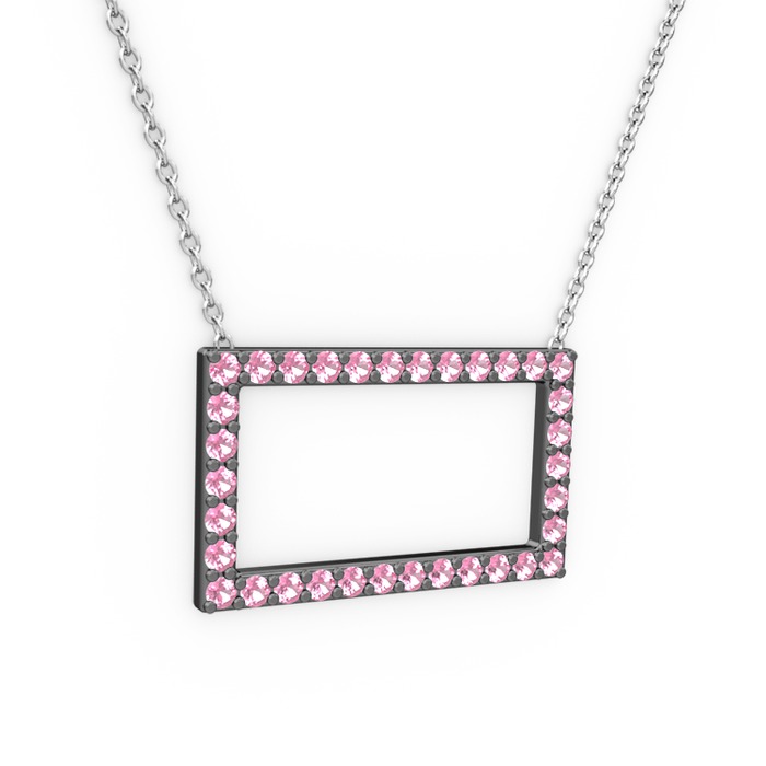 Pembe kuvars 925 ayar siyah rodyum kaplama gümüş kolye (40 cm beyaz altın rolo zincir)