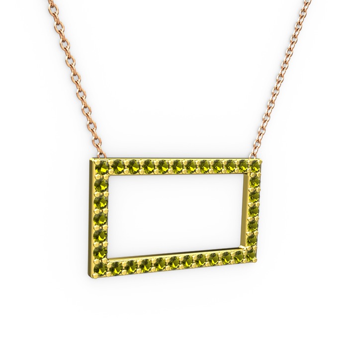 Peridot 18 ayar altın kolye (40 cm rose altın rolo zincir)