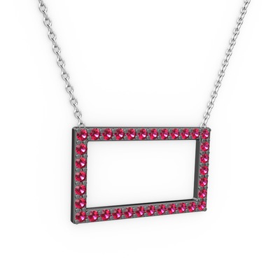 Rodolit garnet 925 ayar siyah rodyum kaplama gümüş kolye (40 cm beyaz altın rolo zincir)