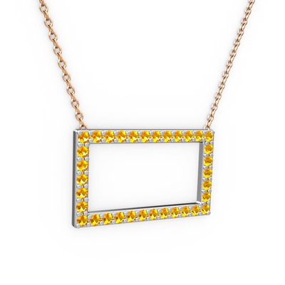 Sitrin 14 ayar beyaz altın kolye (40 cm rose altın rolo zincir)