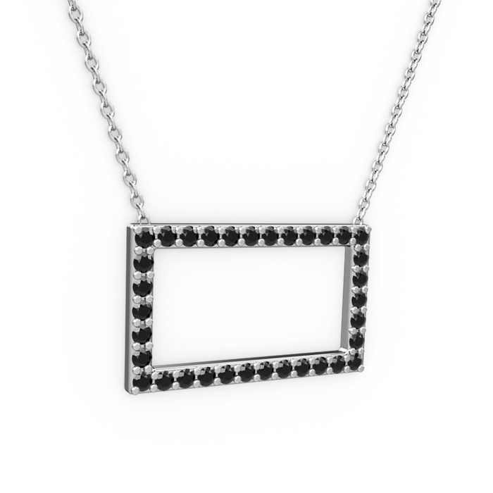 Siyah zirkon 14 ayar beyaz altın kolye (40 cm gümüş rolo zincir)