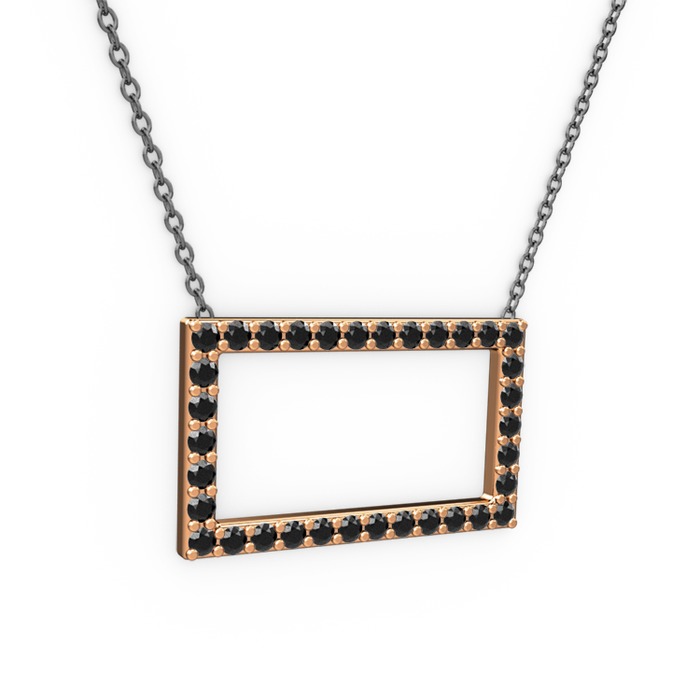 Siyah zirkon 18 ayar rose altın kolye (40 cm gümüş rolo zincir)