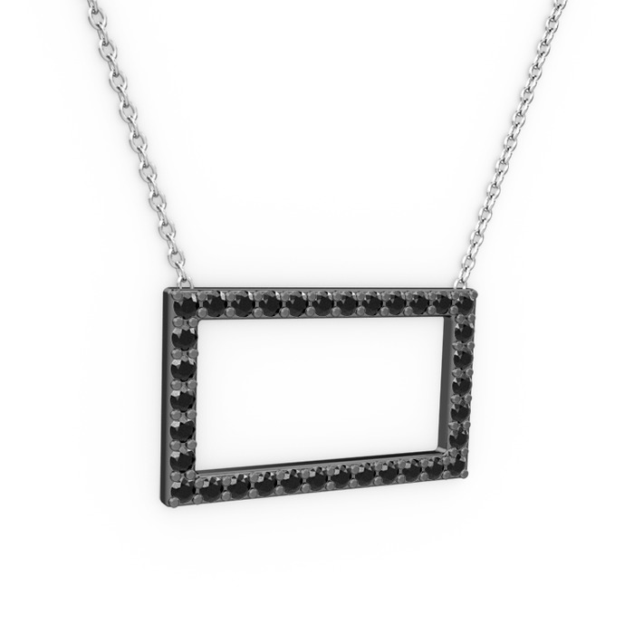 Siyah zirkon 925 ayar siyah rodyum kaplama gümüş kolye (40 cm beyaz altın rolo zincir)