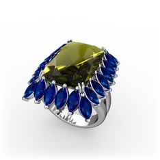 Peridot ve lab safir 14 ayar beyaz altın yüzük