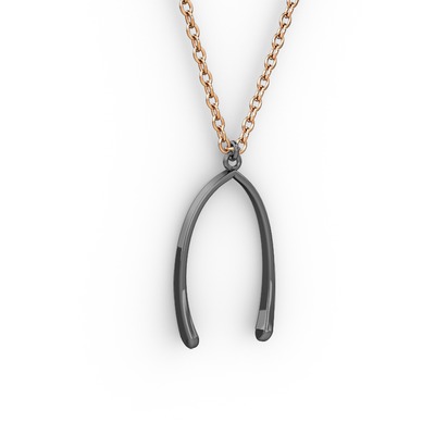 925 ayar siyah rodyum kaplama gümüş kolye (40 cm rose altın rolo zincir)