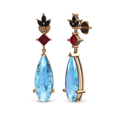 Akuamarin, rodolit garnet ve siyah zirkon 925 ayar rose altın kaplama gümüş küpe