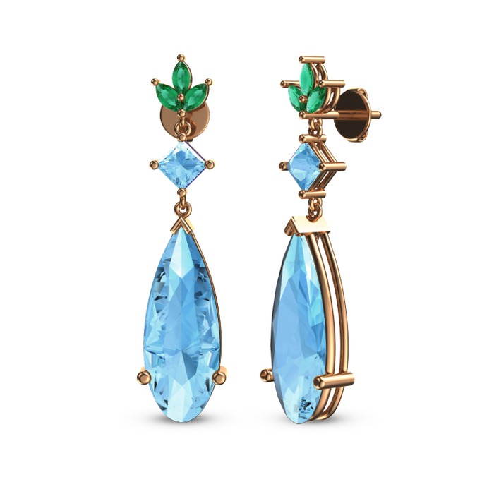 Akuamarin ve yeşil kuvars 18 ayar rose altın küpe