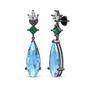 Akuamarin, yeşil kuvars ve beyaz zirkon 925 ayar siyah rodyum kaplama gümüş küpe
