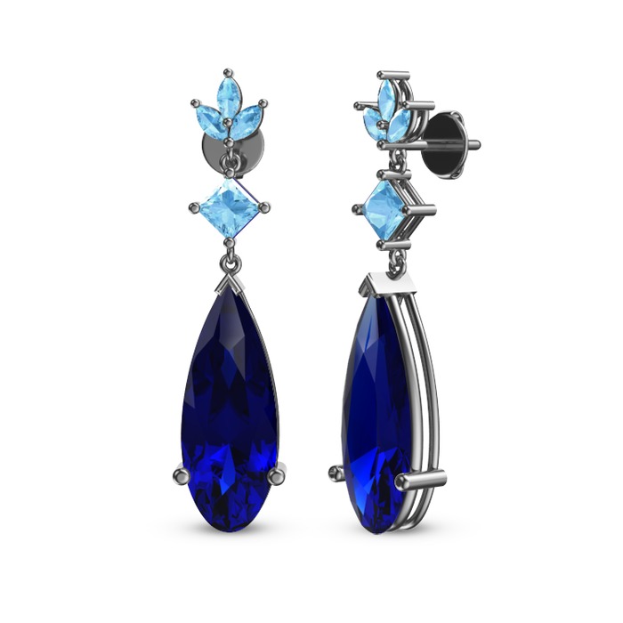 Lab safir ve akuamarin 14 ayar beyaz altın küpe