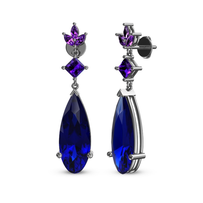 Lab safir ve ametist 14 ayar beyaz altın küpe
