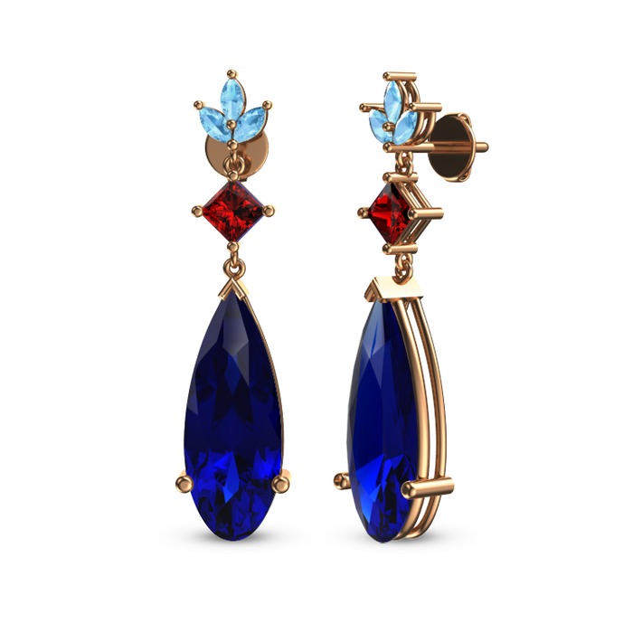 Lab safir, garnet ve akuamarin 14 ayar rose altın küpe