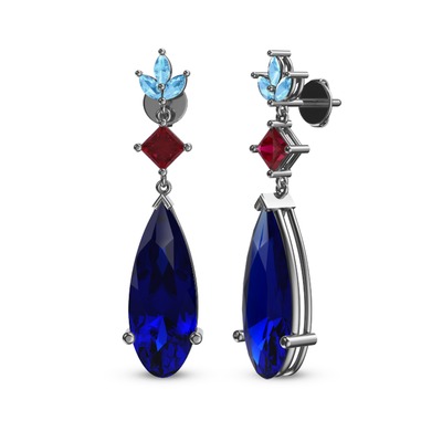 Lab safir, rodolit garnet ve akuamarin 18 ayar beyaz altın küpe