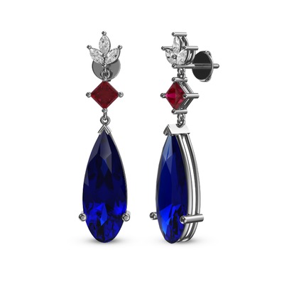 Lab safir, rodolit garnet ve beyaz zirkon 18 ayar beyaz altın küpe