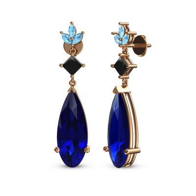 Lab safir, siyah zirkon ve akuamarin 14 ayar rose altın küpe