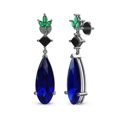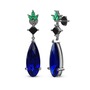 Lab safir, siyah zirkon ve yeşil kuvars 18 ayar beyaz altın küpe
