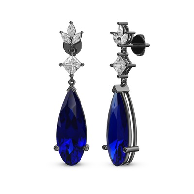 Lab safir, swarovski ve beyaz zirkon 925 ayar siyah rodyum kaplama gümüş küpe