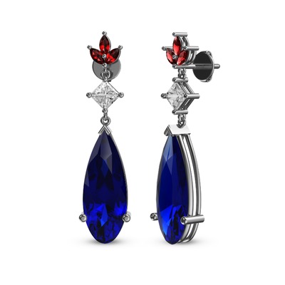 Lab safir, swarovski ve garnet 14 ayar beyaz altın küpe