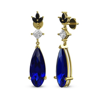 Lab safir, swarovski ve siyah zirkon 14 ayar altın küpe