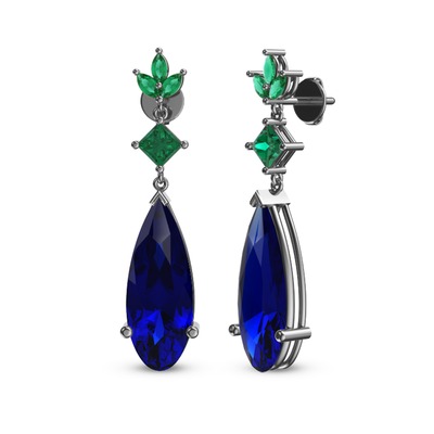 Lab safir ve yeşil kuvars 14 ayar beyaz altın küpe