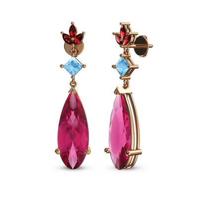 Pembe kuvars, akuamarin ve garnet 8 ayar rose altın küpe