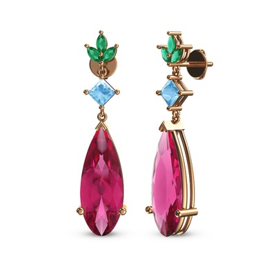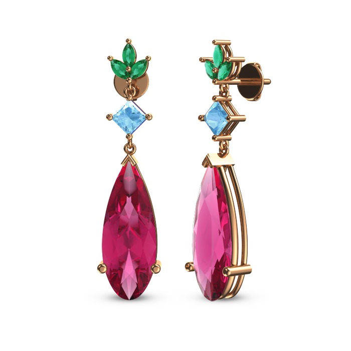 Pembe kuvars, akuamarin ve yeşil kuvars 18 ayar rose altın küpe