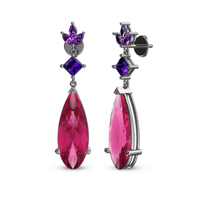 Pembe kuvars ve ametist 18 ayar beyaz altın küpe