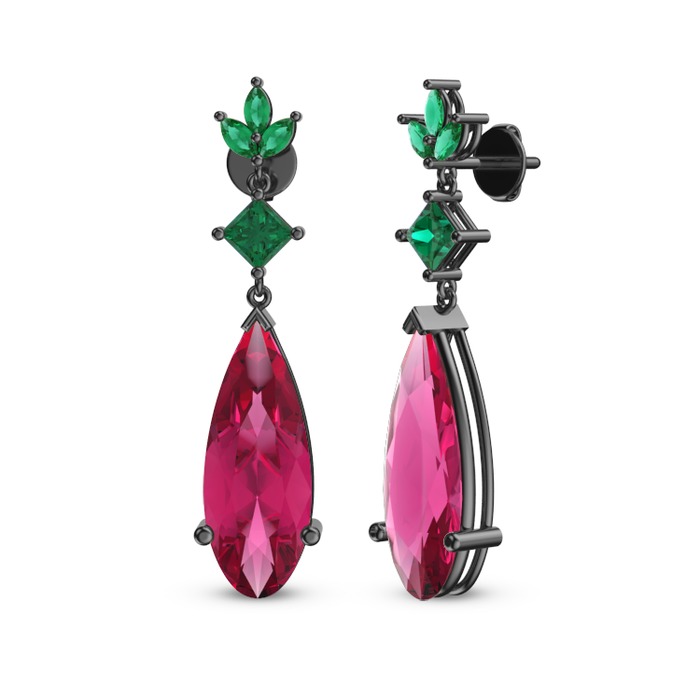 Pembe kuvars ve yeşil kuvars 925 ayar siyah rodyum kaplama gümüş küpe