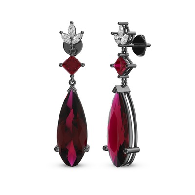 Rodolit garnet ve beyaz zirkon 925 ayar siyah rodyum kaplama gümüş küpe