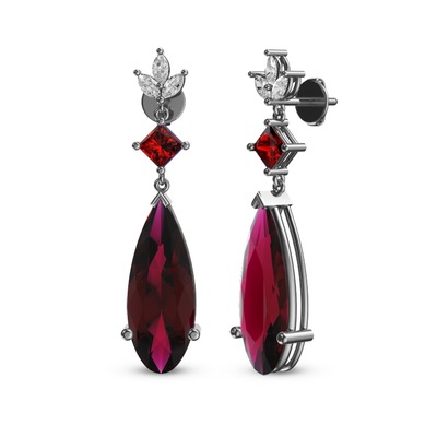 Rodolit garnet, garnet ve beyaz zirkon 18 ayar beyaz altın küpe