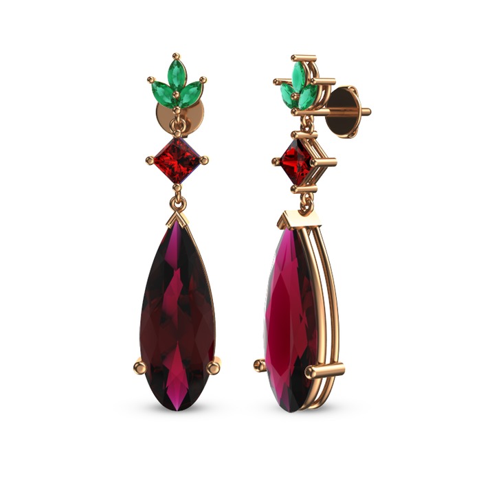 Rodolit garnet, garnet ve yeşil kuvars 925 ayar rose altın kaplama gümüş küpe