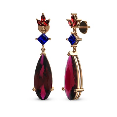 Rodolit garnet, lab safir ve garnet 925 ayar rose altın kaplama gümüş küpe