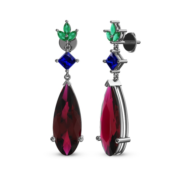 Rodolit garnet, lab safir ve yeşil kuvars 925 ayar gümüş küpe