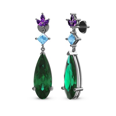 Yeşil kuvars, akuamarin ve ametist 925 ayar gümüş küpe