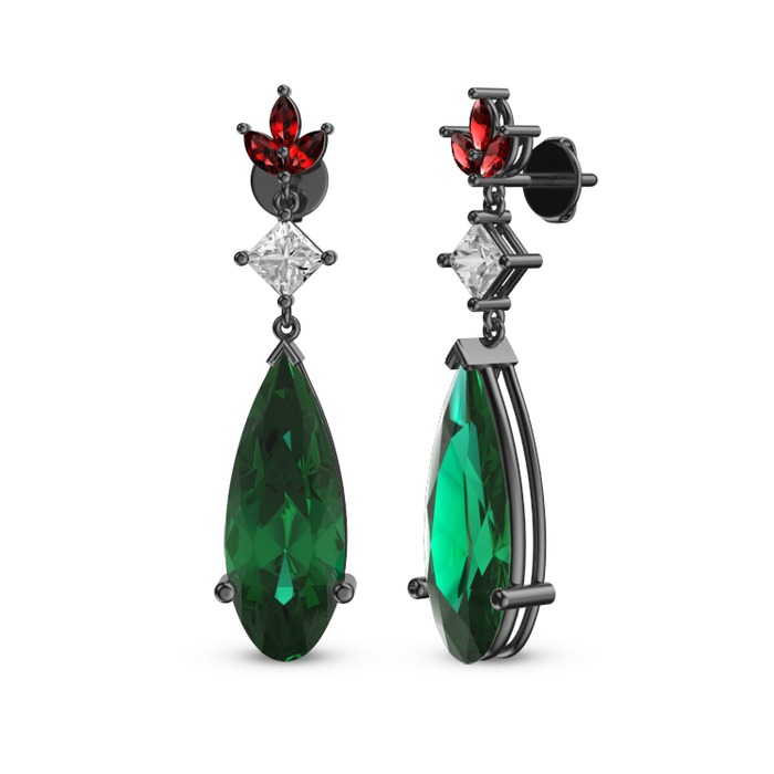 Yeşil kuvars, swarovski ve garnet 925 ayar siyah rodyum kaplama gümüş küpe