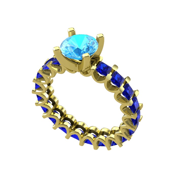 Akuamarin ve lab safir 8 ayar altın yüzük
