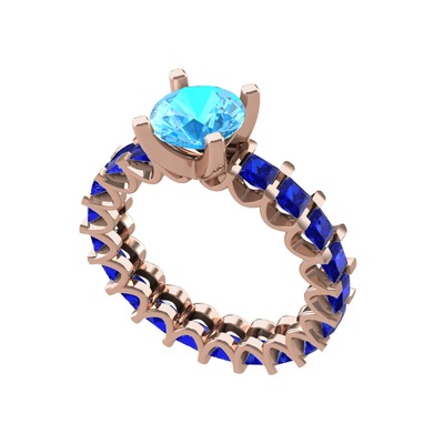 Akuamarin ve lab safir 925 ayar rose altın kaplama gümüş yüzük