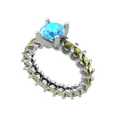 Akuamarin ve peridot 18 ayar beyaz altın yüzük