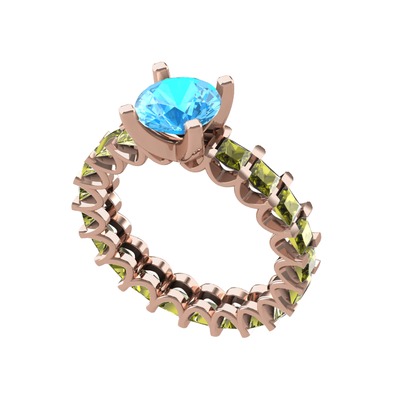 Akuamarin ve peridot 925 ayar rose altın kaplama gümüş yüzük