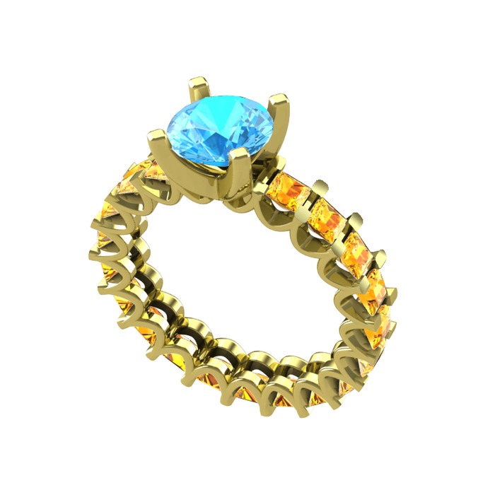 Akuamarin ve sitrin 925 ayar altın kaplama gümüş yüzük