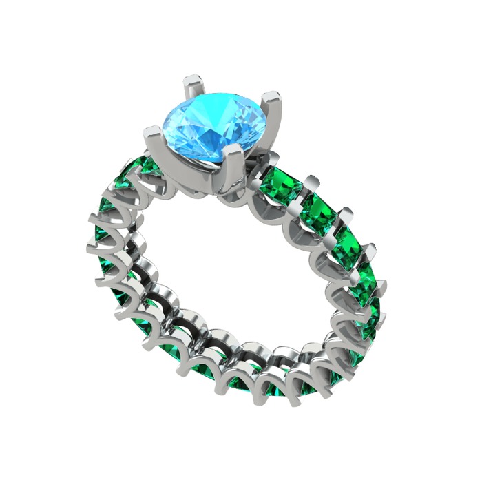 Akuamarin ve yeşil kuvars 8 ayar beyaz altın yüzük