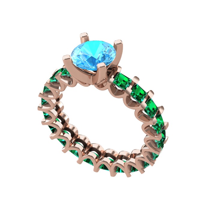 Akuamarin ve yeşil kuvars 8 ayar rose altın yüzük