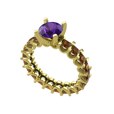 Ametist ve dumanlı kuvars 925 ayar altın kaplama gümüş yüzük