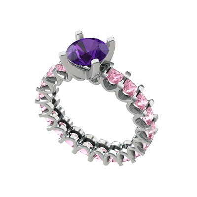 Ametist ve pembe kuvars 14 ayar beyaz altın yüzük