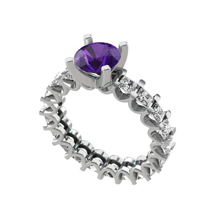 Ametist ve pırlanta 925 ayar gümüş yüzük (3 karat)